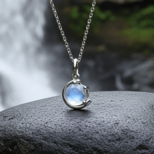 Der echte Mondstein mit seinem charakteristischen bläulichen Schimmer steht für Intuition, Weiblichkeit und emotionale Balance.